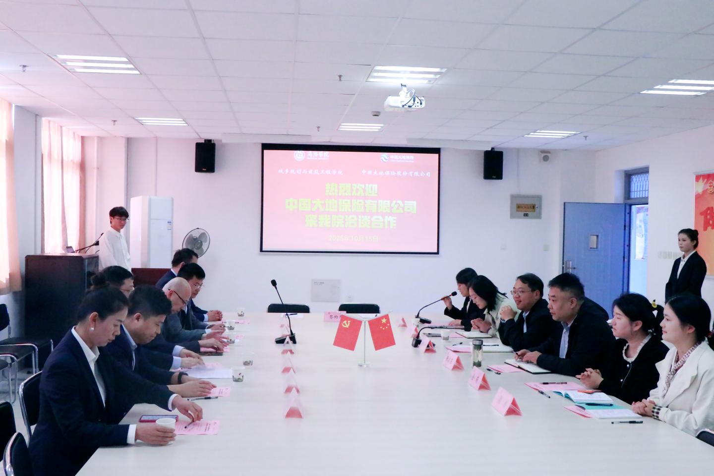 学院党委书记、院长杨小锋对从学科专业建设、师资队伍配置、特色人才培养模式及毕业生就业质量等方面进行详细介绍,并向大地保险公司对学院就业工作的支持表达感谢,他指出实践教学与就业创业指导在学生成长成才中起到非常关键的作用,此次合作将为学生实践能力提升和职业发展起到极大的推动作用,为学院就业工作注入新的活力。