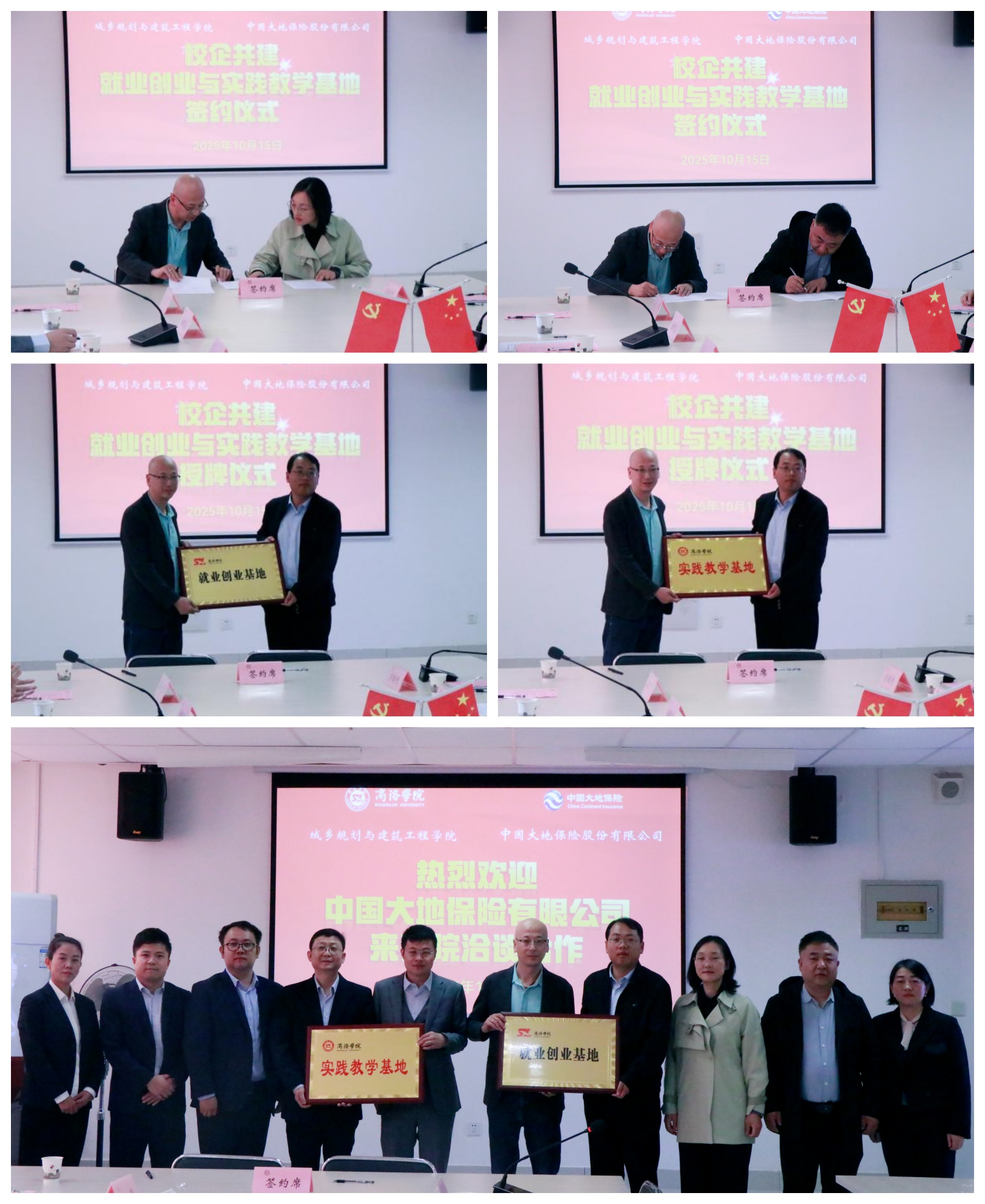 为深化产教融合、促进校地协同育人,搭建大学生就业创业与实践教学优质平台,10月14日,商洛学院城乡规划与建筑工程学院与中国大地财产保险股份有限公司商洛中心支公司举行共建大学生就业创业基地、实践教学基地签约授牌仪式。中国大地财产保险商洛中心支公司总经理康霏,建工学院党委书记、院长杨小锋出席仪式。