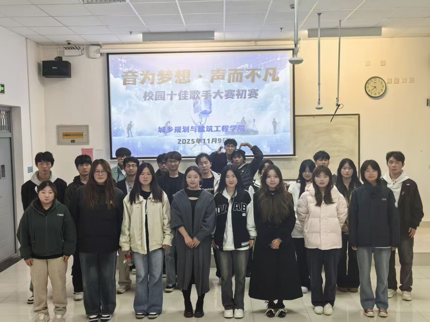 青春如歌,梦想飞扬。为发掘校园音乐人才,丰富课余文化生活,11月9日19:30-21:30,商洛学院城乡规划与建筑工程学院“音为梦想·声而不凡”校园十佳歌手大赛初赛在多媒体29教室温情开唱。来自全院各班级的音乐爱好者齐聚一堂,用歌声传递青春态度,共赴一场音乐盛宴。