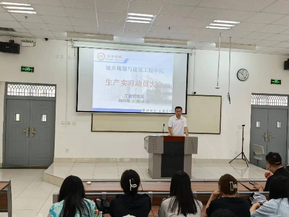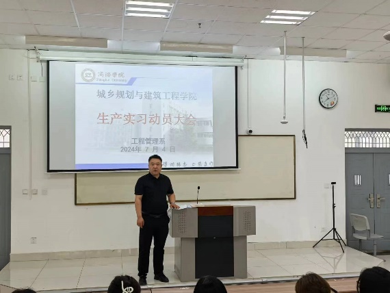 为进一步扎实做好工程管理专业生产实习工作,规范实习过程,保证实习质量,2024年7月4日,工程管理系在8号教学楼多媒体19召开2021级工程管理专业生产实习动员会。建工学院副院长张家荣及实习指导教师出席会议,工程管理专业2021级全体学生参加会议,动员会由工程管理系主任党斌主持。
